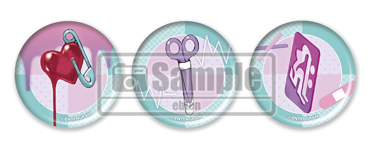 「きりく」のアイテム3種をデザインした缶バッジです。