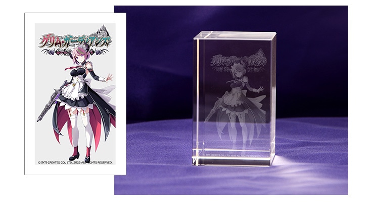本作の主人公「キリカ」のビジュアルをクリスタルキューブ内に3D立体レーザー彫刻で再現した3Dクリスタルです。
