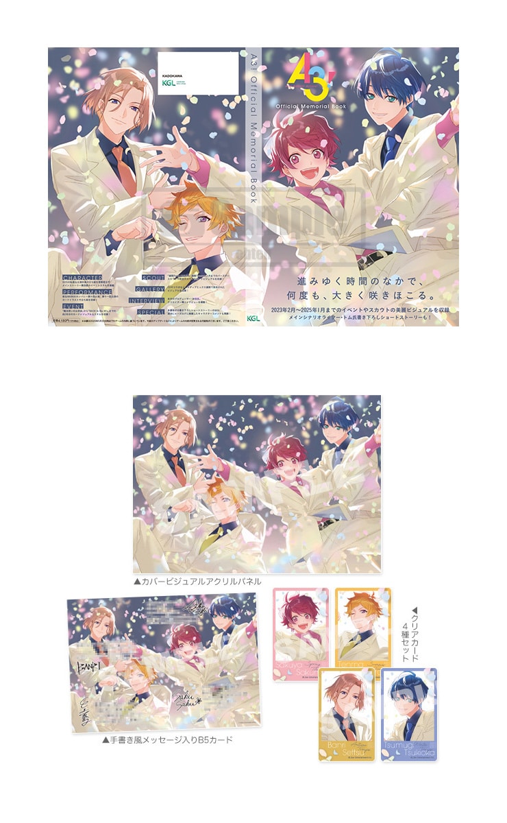 『A3!』メインストーリー第四部を主軸に、イベントやスカウトなどの美麗ビジュアルを詰め込んだ記念本『A3! Official Memorial Book』が発売決定!