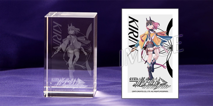 「きりん」のビジュアルをクリスタルキューブ内に3D立体レーザー彫刻で再現した3Dクリスタルです。