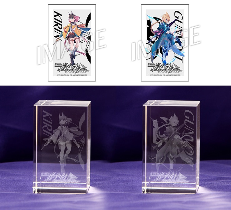 「GV」と「きりん」のビジュアルをクリスタルキューブ内に3D立体レーザー彫刻で再現した3Dクリスタルです。