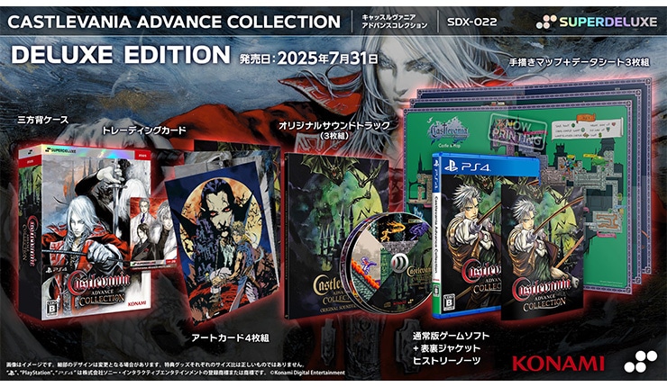 悪魔城ドラキュラシリーズの探索型アクションゲーム3作品に加え、「悪魔城ドラキュラXX」、初公開となる未公開アートなどを収録した本作。