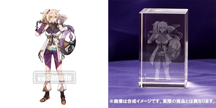 本作のヒロイン「カージャ・バルタ」のビジュアルをクリスタルキューブ内に3D立体レーザー彫刻で再現した3Dクリスタルです。
