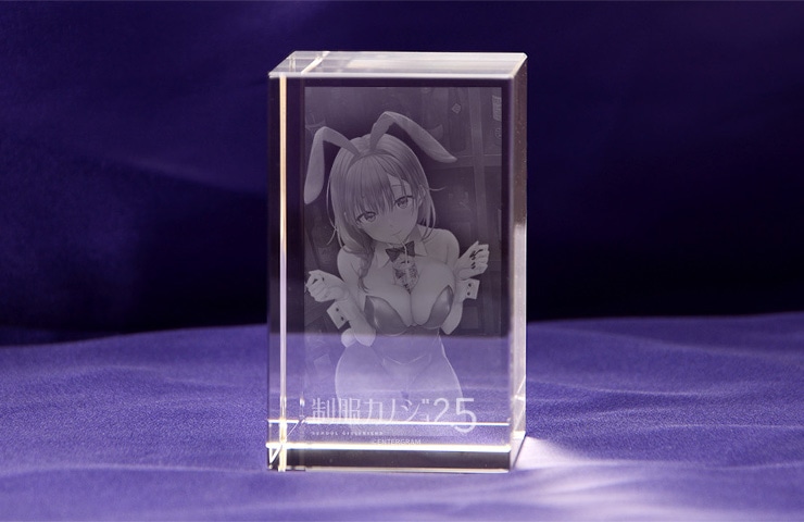 「古賀希望」のイラストをクリスタルキューブ内に3D立体レーザー彫刻で再現した3Dクリスタルです。