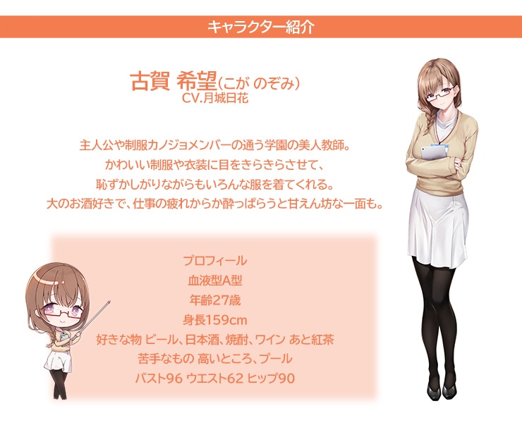 前作大人気のキャラクター『古賀希望』先生が学生服を身に纏い”好き”を叶えます!