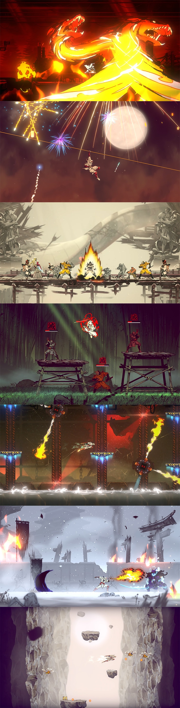 全く新しい忍者アクションゲームです。復讐心に満ちた一人の忍の物語が、独特の手描きアートスタイルで繊細かつ鮮やかに描かれます。