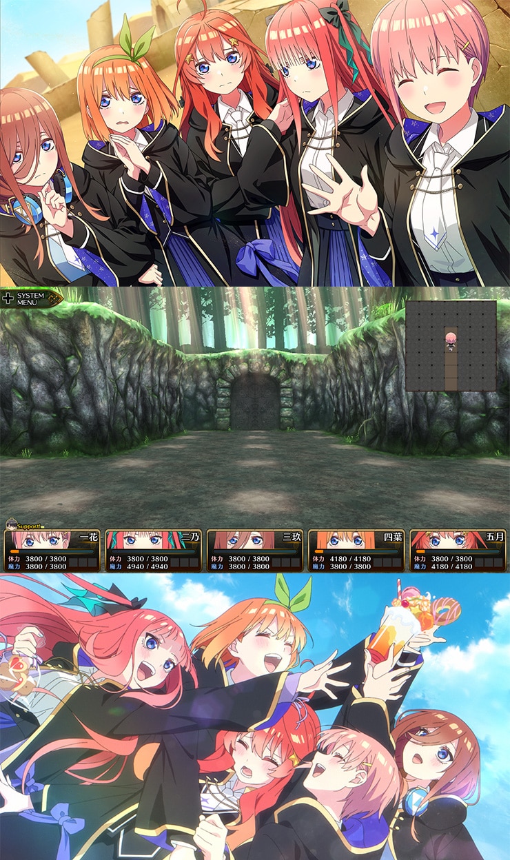 プレイヤーは上杉風太郎となり、中野家の五つ子の装備や、