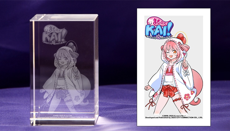 「ふるる」のイラストをクリスタルキューブ内に3D立体レーザー彫刻で再現した3Dクリスタルです。