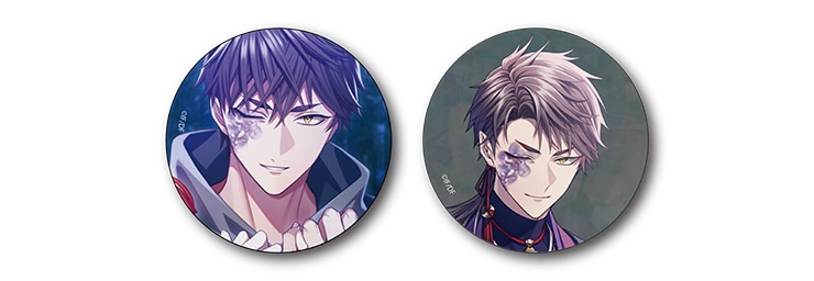 「逸色 珠沙(主人公)」「天堂 紅華」「伊音 響」「秋月 香羊」「水鏡 星絆」「魅ナミ」「聖夜・オディロ・柚木永」「幸麿」「狐春」「久遠 桃嘉」のイラストを使用したちびキャラ缶バッジ10種セットです。