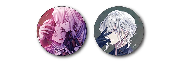 「聖夜・オディロ・柚木永」のイラストを使用した缶バッジ2種セットです。