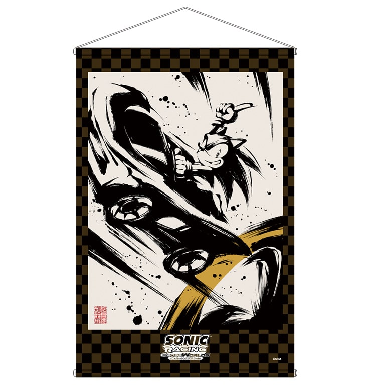 墨絵をモチーフに描かれたソニックのグッズシリーズ『墨絵 超音速針鼠』とのコラボレーショングッズです。 本作のために描き下ろされた新規イラストを使用した掛け軸風デザインのタペストリーです。