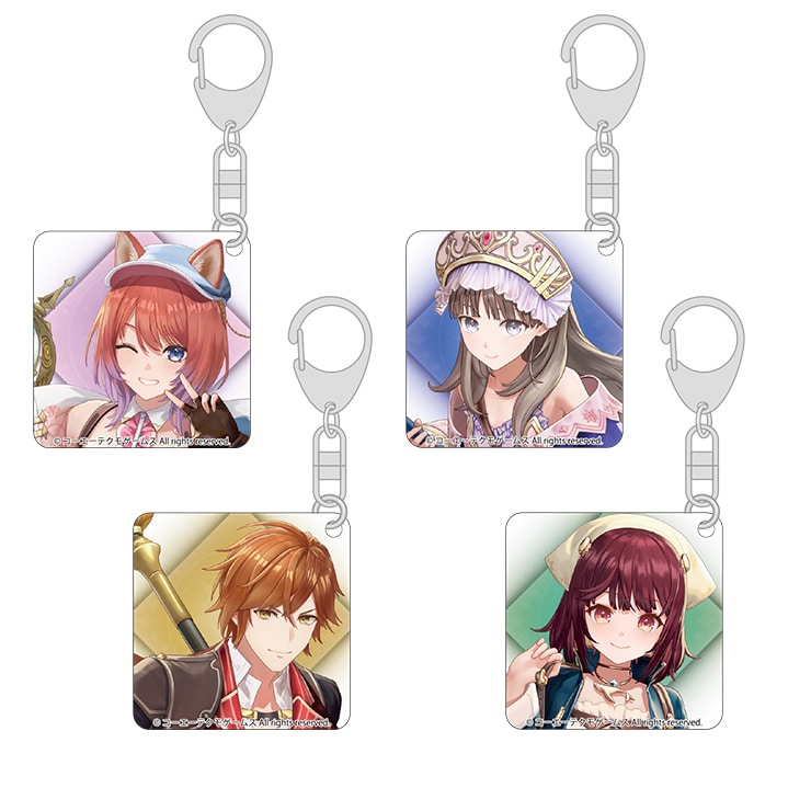 リアス、スレイ、ソフィー、トトリのデザインを使用したアクリルキーホルダーセットです。
