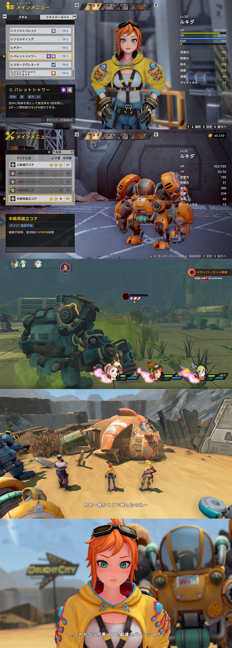 メカは4つの部位にパーツを装備することが可能で、外見も変化する。さらに、エンジンをカスタマイズすれば、能力値上昇に加え、コアの装備が可能となる。コアを装備することで特定の条件下で発動するスキルを得られるため、自分の好みにあったカスタマイズが可能。