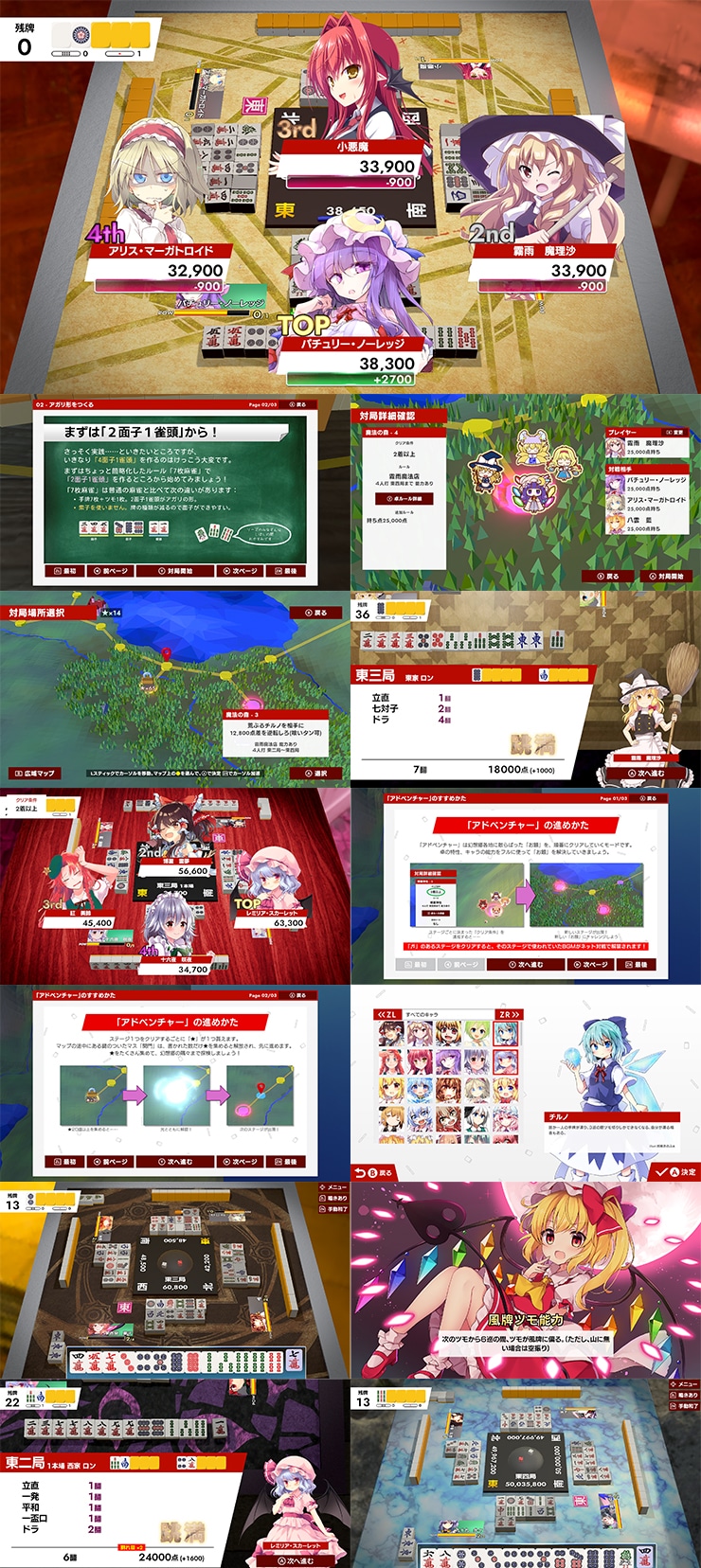 歴代の東方Projectの20を超える作品から、総勢130キャラ以上が参戦する、4人/3人打ちの麻雀ゲーム。