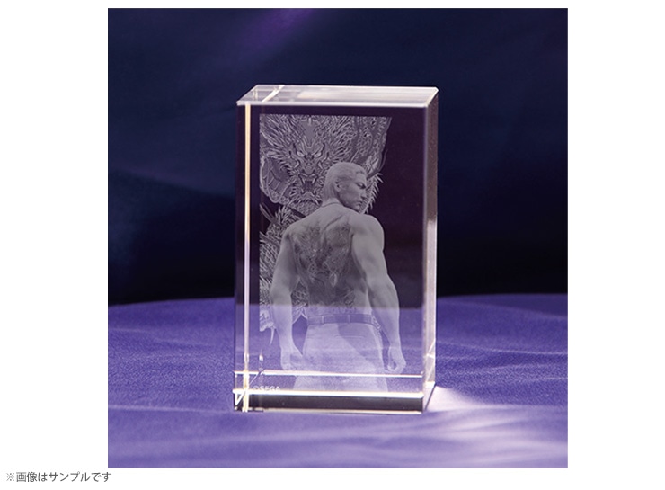 「郷田 龍司」のビジュアルをクリスタルキューブ内に3D立体レーザー彫刻で再現した3Dクリスタルです。