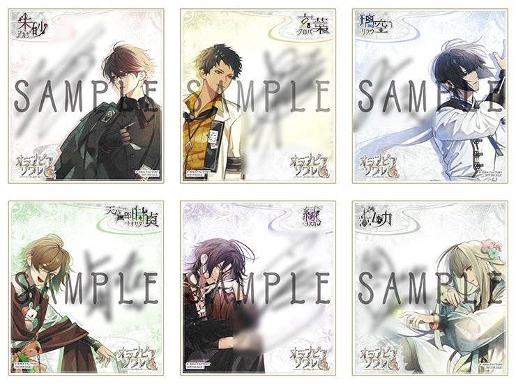 B6サイズのプレートに、攻略対象キャラクター全六名のスタンド・台座が含まれています。