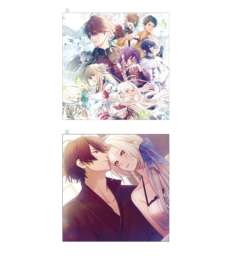 キービジュアル、朱砂とオランピアのスチルを使用したCDジャケットサイズのイラストカードです。