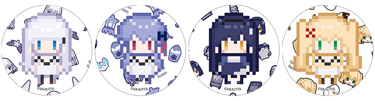 キャラクターのドット素材を使用した缶バッジセットです。