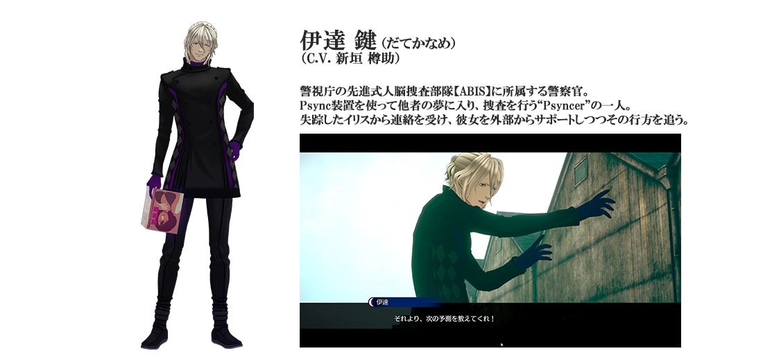本パートのプレイアブルキャラクターは【ABIS】に所属する警察官、伊達 鍵。
