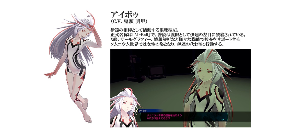 本作ではシリーズ第1作で主人公を務めた「伊達 鍵」が眼球型AI「アイボゥ」と再びタッグを組み、