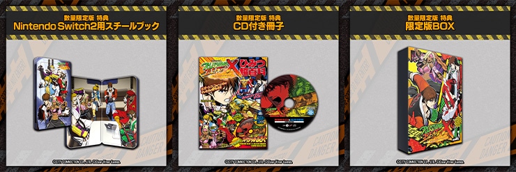 (1)CD付き冊子…CDには本作のBGMだけでなく歴代『ラッシング・ビート』シリーズや関連ジャレコタイトルのBGMをたっぷり収録。冊子には、本作に登場するキャラクターや多彩な技を紹介するガイドなどを収録。