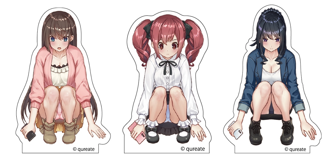 キャラクターが隠れている際のイラストを使用したアクリルブロックの3種セットです。
