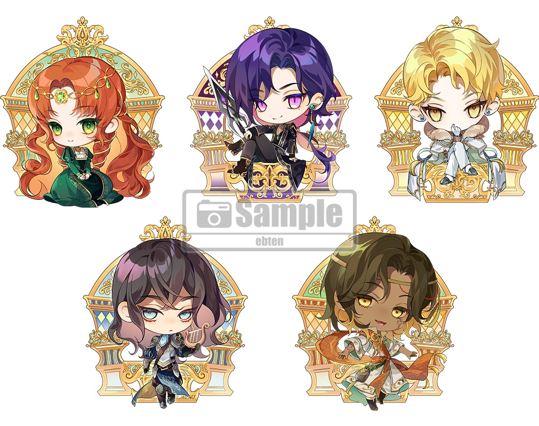 ミニキャライラストを使用したハート缶バッジ5種セットです。