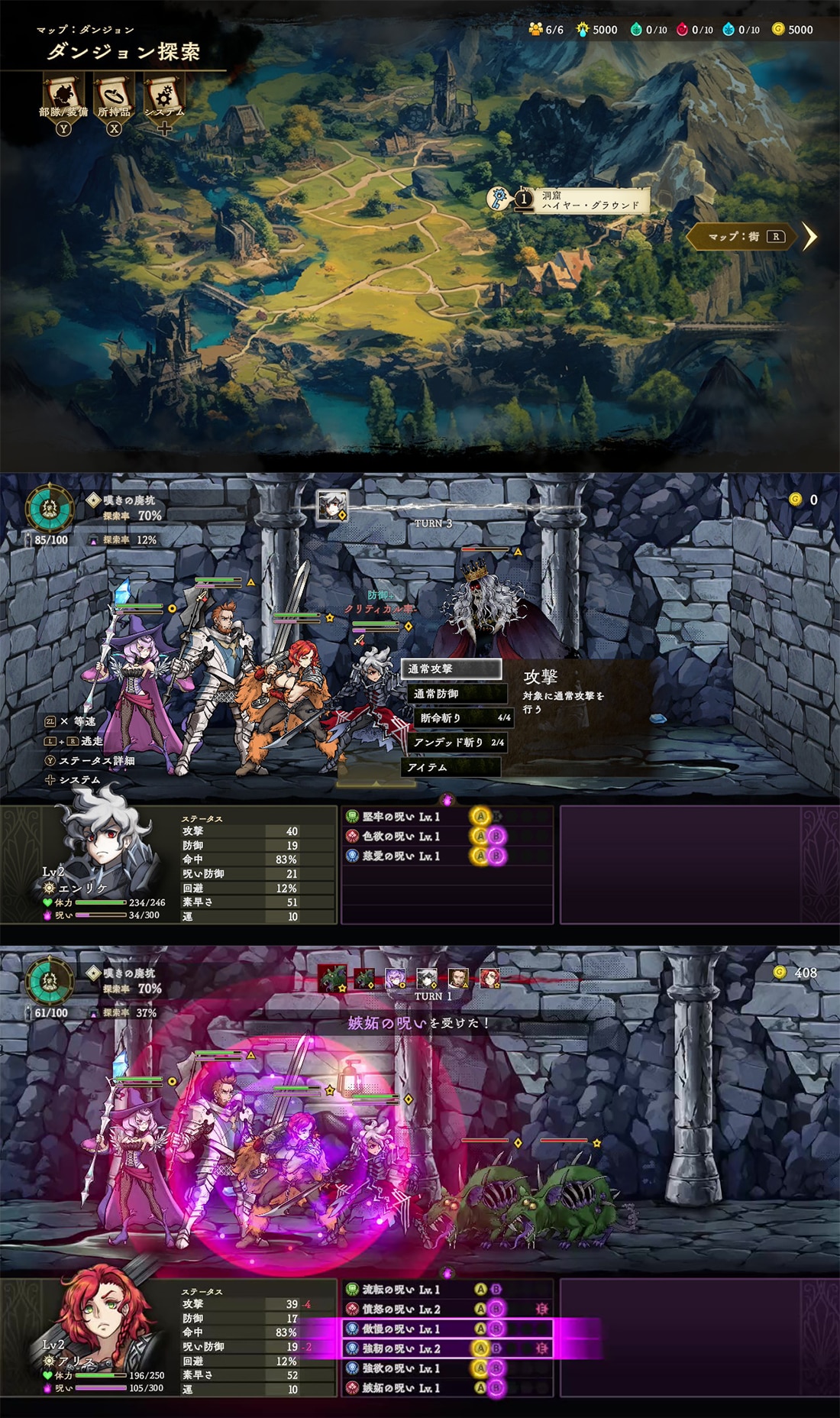 呪いはメンバーの能力や行動を変化させるため、プレイヤーは常にパーティの状態を把握し、
