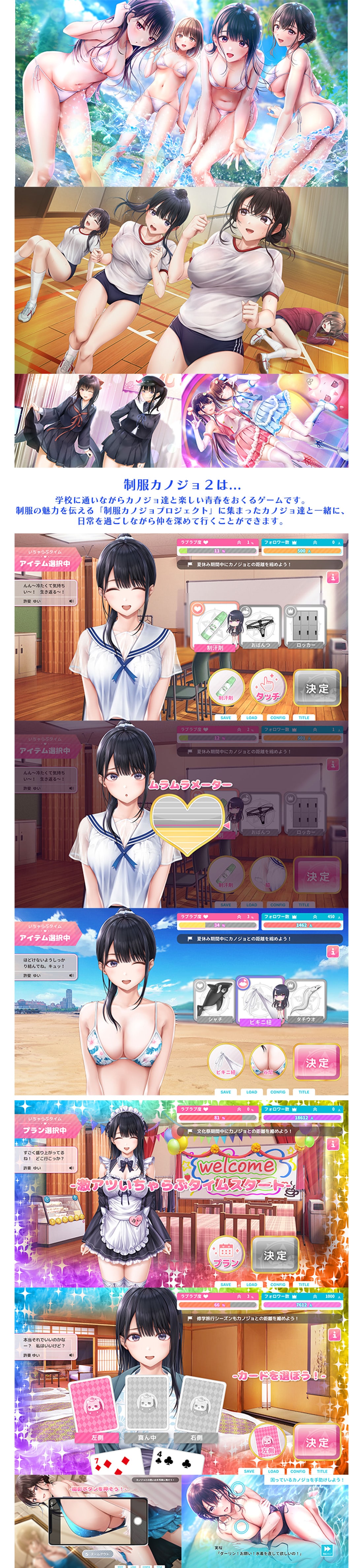 可愛い制服を広める「制服カノジョ」活動を通して絆を深め合う恋愛ゲームです。