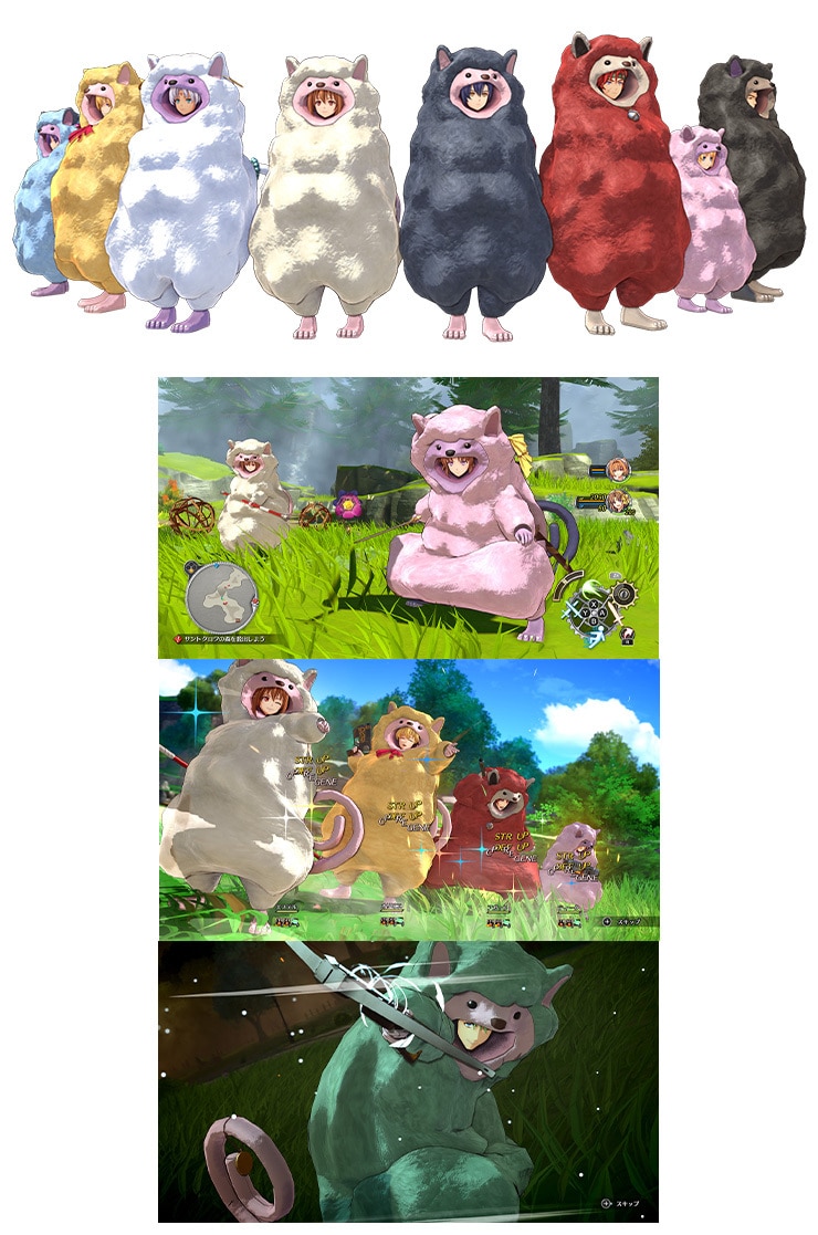 エステル、ヨシュアをはじめとした全パーティキャラの衣装を魔獣「ヒツジン」風のもこもこ着ぐるみに変更することができる、限定版専用のDLCです。