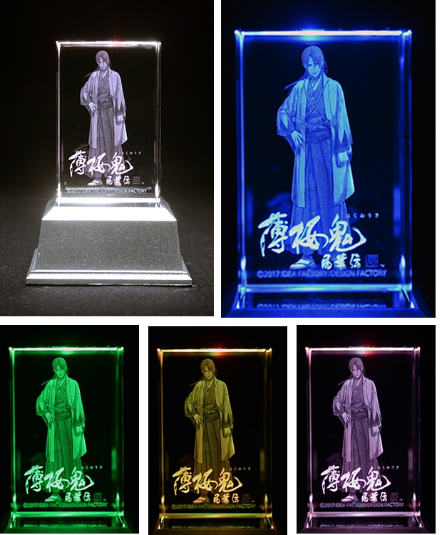 「土方歳三」のイラストをクリスタルキューブ内に3D立体レーザー彫刻で再現。付属のLEDスタンドに設置することにより、光の加減や角度によってさまざま見え方で楽しめる、飽きのこないインテリアアイテムです。