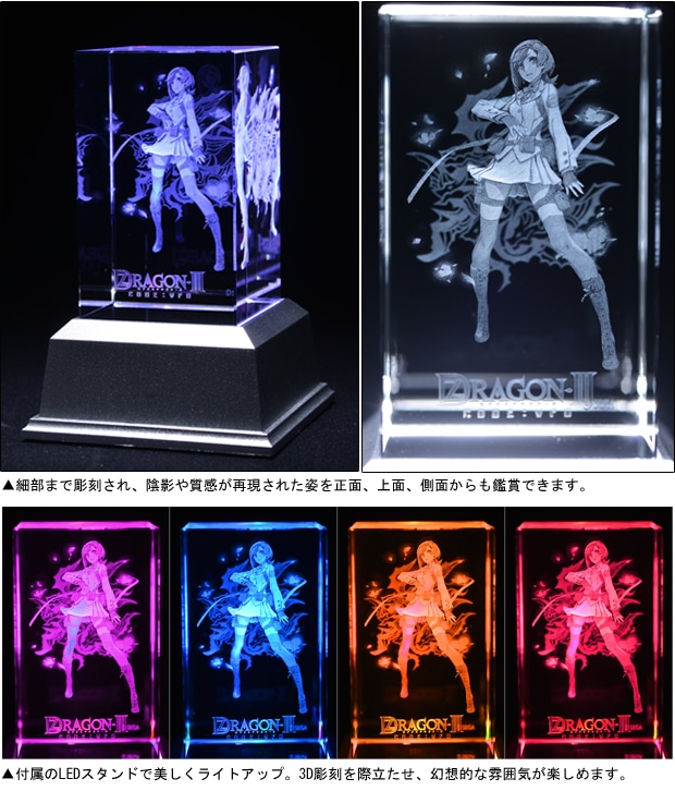 本作にて選択できるプレイヤーキャラクターの外見“サムライ”をクリスタルキューブ内に3D立体レーザー彫刻で再現。付属のLEDスタンドに設置することにより、光の加減や角度によってさまざま な見え方をしますので、煌びやかで飽きのこないインテリアアイテムとして楽しめます。