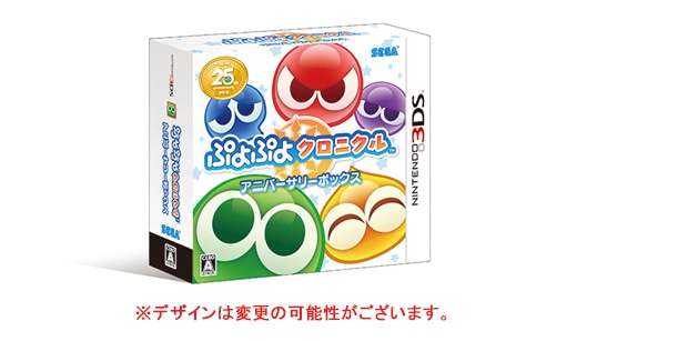 本限定版のみでしか入手できない、「サウンドトラック」、「ヴォーカルトラック」、「ドラマCD」の3枚のCDとぷよぷよ25周年記念デザインの3DSのテーマをニンテンドー3DSソフト『ぷよぷよクロニクル』と同梱した特別な製造数限定の商品です。