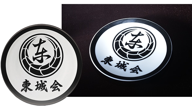 東城会の代紋をあしらった小皿です。会合時や祝いの席など、用途に応じてご使用ください。