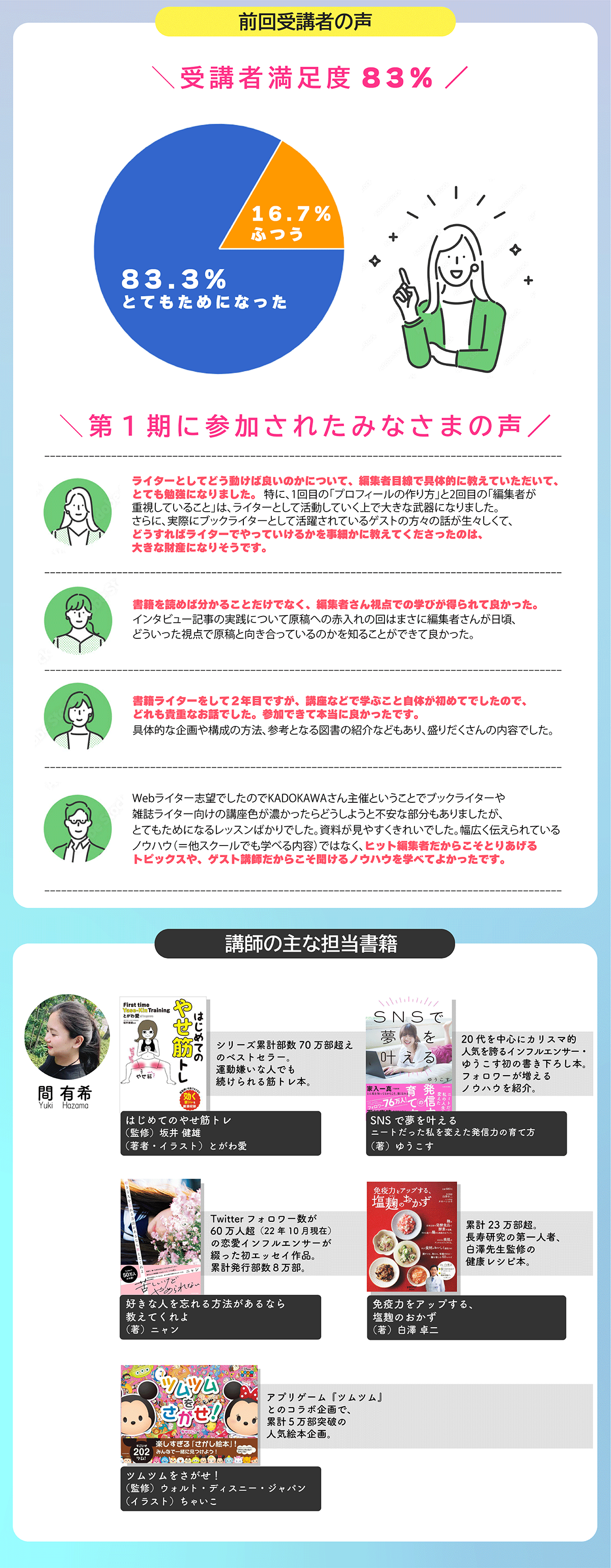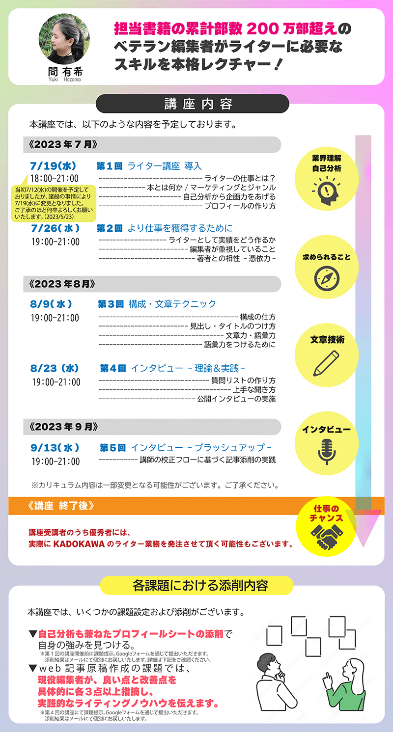 講座終了後、優秀者につきましては、実際にKADOKAWAのライター業務を依頼させて頂く可能性も!